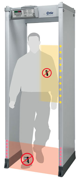 A kapu vizuálisan 60 érzékelési zónában képes – LED diódák segítségével – megmutatni a tárgy pontos helyzetét az áthaladó személynél. Ezzel egy időben a mobiltelefon pozícióját sárga fényű LED-del és változó frekvenciájú riasztási hanggal jelzi a készülék. Vajon milyen ok miatt fontos, hogy külön válasszuk a mobiltelefont az egyéb fémtárgyaktól? Ha olyan helyen alkalmazzuk a detektorkaput ahol fontos, hogy fegyverek, kések egyéb tiltott eszközök ne jussanak be a területre, ott a kapuk általános érzékenysége miatt már egy okostelefon fémtartalma is riasztást ad. Ha tudjuk, hogy a jelzést csak egy veszélytelen telefon váltotta ki, akkor az áthaladó személyt nem kel megállítani és megkeresni nála a fémtárgyat.