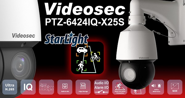 A mindössze 3kg tömegű, 30x16cm méretű Videosec PTZ kamera, a PTZ-6424IQ-X25S a körbeforgatható kamerákat igénylő projektek adu-ásza. A 0.003 lux fényérzékenység mellé 100m hatótávolságú infravető világít teljes sötétben. A 4.8-120mm átfogású zoom élességállítását 3D fókusztérkép segíti, amiben a már feltelepített kamerán térbeli vonalakat adunk meg, amiken végighaladva élességet állít a kamera, így létrehozva a környezet 3D fókusztérképét. A PTZ mozgások alkalmával az élességállítás ideje így számottevően rövidül.
