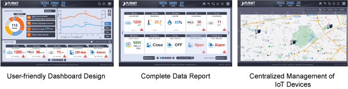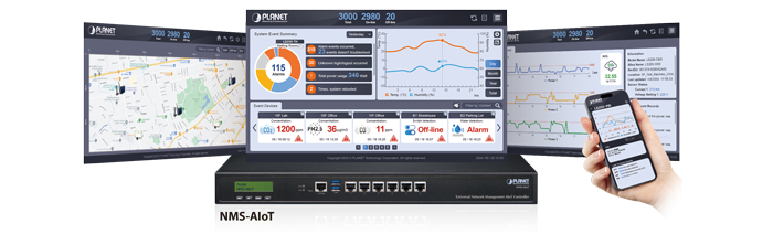 A PLANET NMS-AIoT (Universal Network Management AIoT) alkalmazásszerver több mint 3000 végpont közvetlen felügyeletére képes. Az edge computing és az AIoT (Artificial Intelligence of Things) korszakában a vállalatok számára elengedhetetlen egy nagy teljesítményű, biztonságos és rugalmas menedzsmentplatform, amely képes vezetékes és vezeték nélküli IoT-eszközök, valamint nagymennyiségű környezeti adat integrálására.