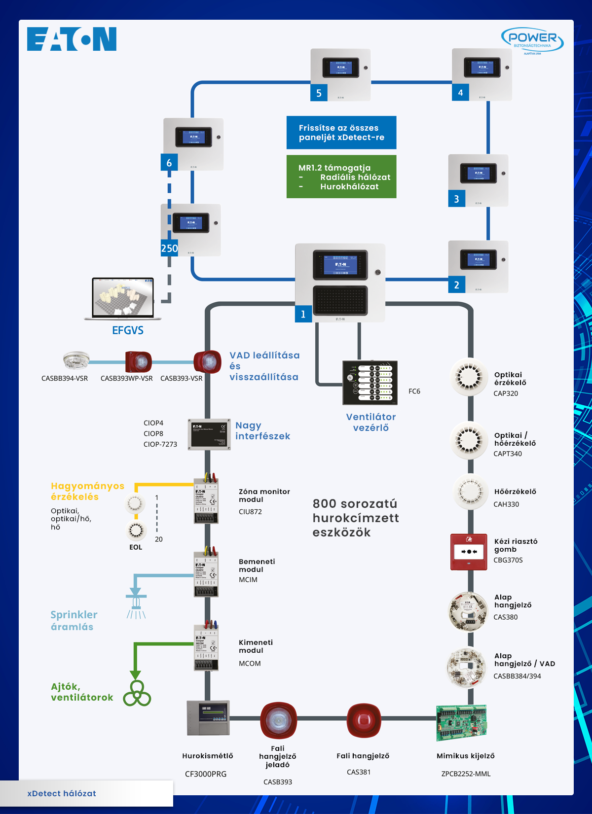 Az xDetect az Eaton által kifejlesztett új generációs, címezhető, teljes mértékben moduláris felépítésű tűzjelző központcsalád.
