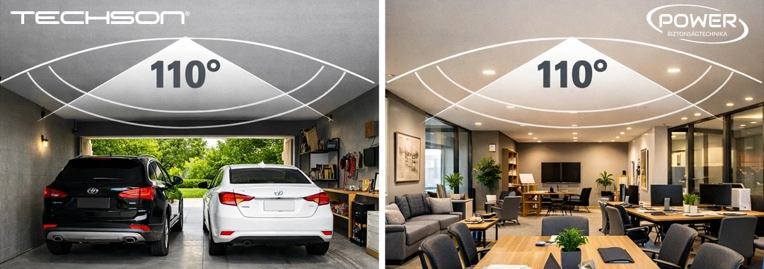 A felbontás terén a Techson nem állt meg a megszokott 4 megapixeles szintnél; az EC5 WiFi kamerák 2880x1620 pixeles (5 Mpx) részletességgel dolgoznak. A 110°-os széles látószögnek köszönhetően egyetlen kamerával akár egy egész kocsibeállót vagy egy tágasabb irodát is holttérmentesen tarthatunk szemmel.